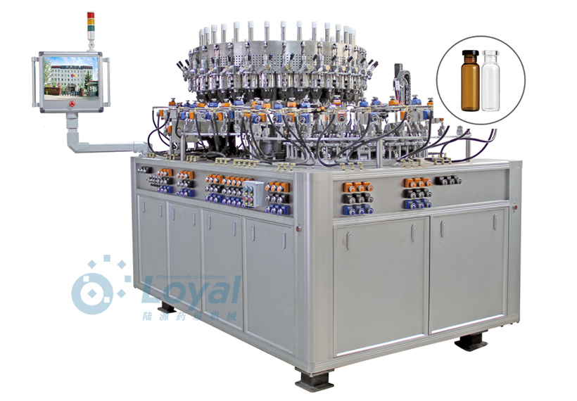 西林瓶生產(chǎn)線包括:自動(dòng)上管、自動(dòng)成型、經(jīng)機(jī)械手轉(zhuǎn)換至前端檢測(cè)線(也叫生產(chǎn)管控)、檢測(cè)線檢測(cè)的項(xiàng)目:1、瓶口內(nèi)外徑 2、瓶身長(zhǎng)短 3、瓶身外徑 4、瓶口邊厚 5、瓶底內(nèi)凹尺寸檢測(cè);經(jīng)檢測(cè)后的合格品再用機(jī)械手夾盤轉(zhuǎn)換至退火爐網(wǎng)帶上,經(jīng)高溫減除應(yīng)力后再降溫,通過氣動(dòng)吸盤將回火后的小瓶轉(zhuǎn)換至后端檢測(cè)線,后端檢測(cè)(也是重檢也叫終檢),經(jīng)后端拍照檢測(cè)項(xiàng)目